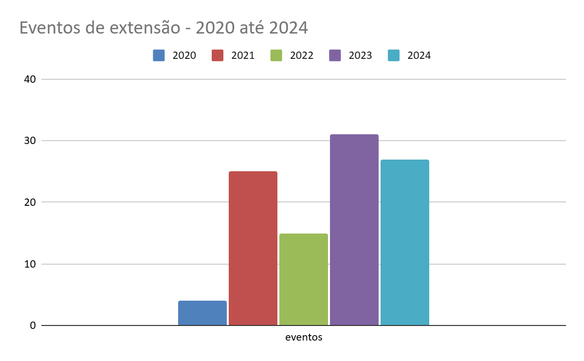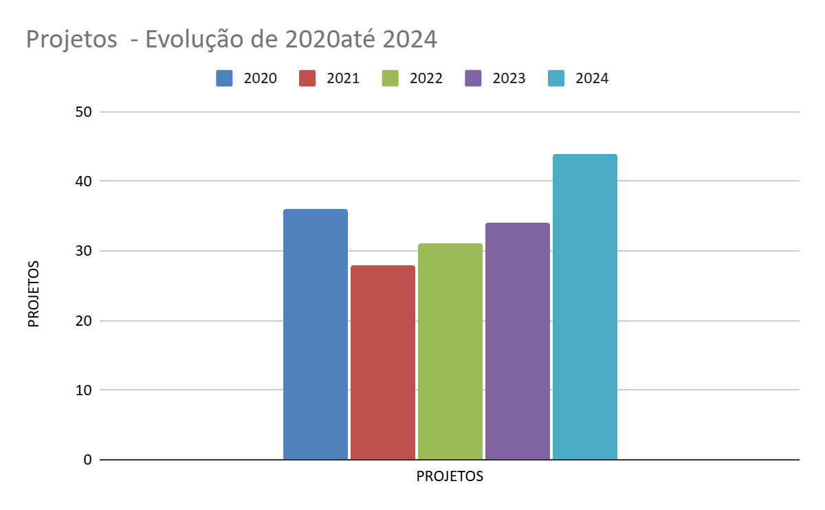 Os indicadores apontam para um crescimento expressivo e contínuo das ações extensionistas, evidenciando a consolidação da Extensão como dimensão estruturante da vida acadêmica na unidade. O número de projetos cadastrados, por exemplo, passou de 28 em 2021 para 44 em 2024, superando inclusive os patamares anteriores à pandemia.